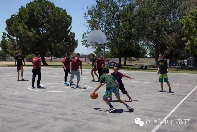 學(xué)校上課注重學(xué)術(shù)的同時,也十分注重學(xué)生們體育的素養(yǎng)和體能的培養(yǎng),午間的美國學(xué)校沒有午休時間,午飯休息后,便開始了體育活動時間。在這里,同學(xué)們充分的享受加州的陽光。