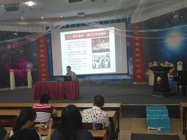 2017年9月28日晚上19:30,遠(yuǎn)恒佳國(guó)際教育城遠(yuǎn)方美術(shù)中心劉明登主任;教育城六藝傳媒項(xiàng)目負(fù)責(zé)人劉孟子老師前往龍華中英文實(shí)驗(yàn)學(xué)校出席了高中部高一新生家長(zhǎng)會(huì)。本次會(huì)議劉明登主任為高一新生家長(zhǎng)詳細(xì)介紹了高中美術(shù)高考工作相關(guān)事宜,有助于高一學(xué)生在高中階段提前為高考專(zhuān)業(yè)做出選擇。六藝傳媒劉孟子老師給家長(zhǎng)朋友們分享了今年傳媒高考的驕人成績(jī),為傳媒項(xiàng)目招生工作打下了良好的基礎(chǔ)。對(duì)于高考專(zhuān)業(yè)的選擇,家長(zhǎng)朋友們的各種疑問(wèn)在會(huì)上一一得到了專(zhuān)業(yè)的解答,且對(duì)我們的高考實(shí)力項(xiàng)目表示肯定。