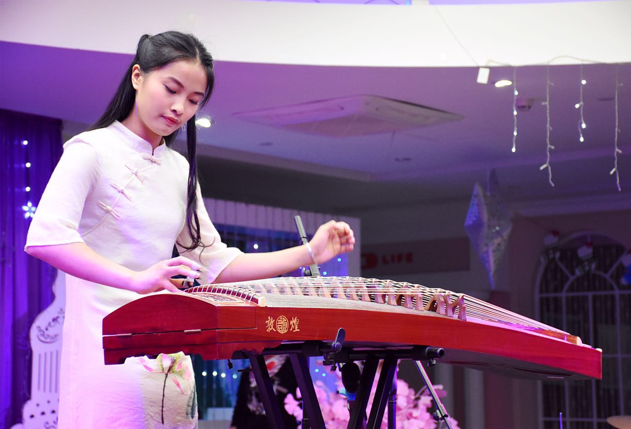 圖為古箏老師鄭麗萍現(xiàn)場演奏歌曲《神話》