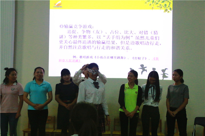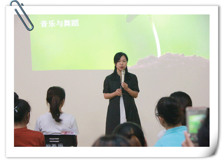 深圳市遠恒佳教育集團學前教育管理中心教研員,深圳市學前教育專業(yè)委員會第二屆骨干講師團講師萬婷婷老師現(xiàn)場指導老師們運用音樂游戲創(chuàng)編策略,設計更貼近幼兒本性的歌唱游戲; 通過歌唱游戲實例,引領老師們簡單重復、潛心體會、簡便低耗、循環(huán)漸進、合拍合樂等歌唱游戲的創(chuàng)編原則。