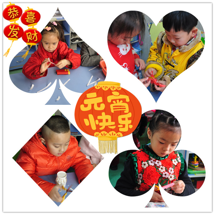 開學(xué)啦!開學(xué)逢元宵,這么喜慶開心的日子,怎么讓還在假期中的熊孩子們收心,開開心心來(lái)上學(xué)呢?這可難不倒多才多藝,能寫會(huì)算的老師們,她們精心布置環(huán)境,將幼兒園布置成一個(gè)喜慶的樂園,還設(shè)計(jì)了做燈籠、剪窗花、做鞭炮、搓湯圓這么多好玩的活動(dòng),小朋友們還帶著爸爸媽媽共同制作的元宵花燈來(lái)讓大家猜燈謎,心里樂開了花啦!