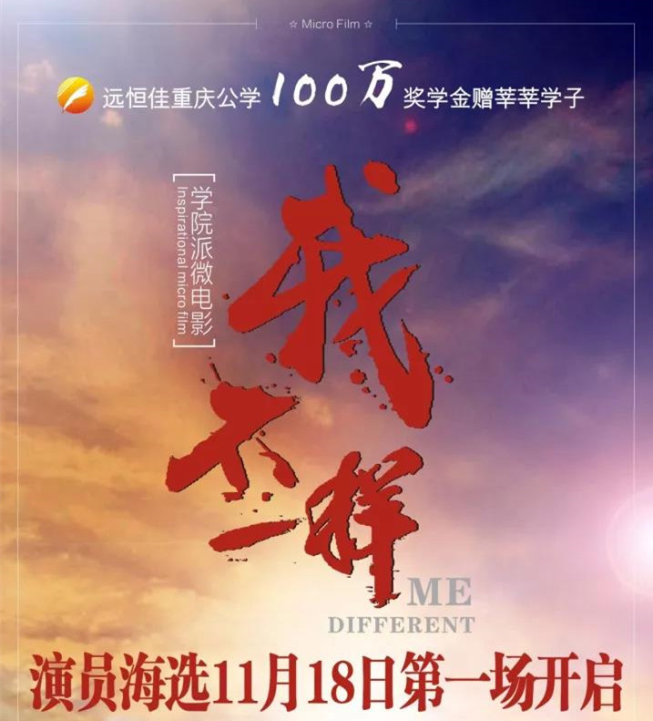遠(yuǎn)恒佳重慶公學(xué)微電影《我,不一樣》演員海選第一場(chǎng)11月18日即將開(kāi)啟
