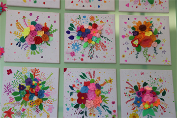 本次美術(shù)作品展由五塊不同主題展區(qū)構(gòu)成,每一個(gè)展區(qū)都充滿了孩子與指導(dǎo)老師的巧思,每幅作品都是一個(gè)精靈,在悄悄的訴說(shuō)著孩子們的五彩世界。樂(lè)我所學(xué),畫我所愛,讓我們共同傾聽每個(gè)孩子的畫中故事。