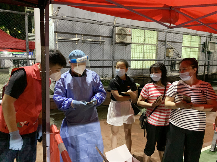 聽黨的號召,為了全員核酸檢測,我校5名志愿者參與了觀瀾大水田社區(qū)抗疫志愿者服務,來到現場聽從安排和培訓。3天時間,我和馬定云同志(少先隊輔導員)主要負責分員分流,檢測人員較多,需10人1組進行檢測,并教他們如何填報。志愿者們分工協(xié)作,天氣炎熱,人流多,哪里缺位缺崗有人頂,親身感受到大家的默默付出和無私奉獻精神,疫情無情人有情,守得云開見月明。大愛無疆,戰(zhàn)疫必勝!