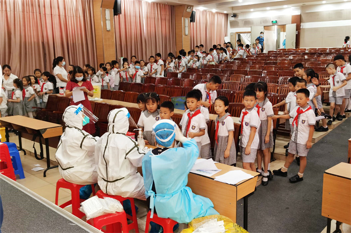 2021年6月7日下午,龍華區(qū)疾控中心核酸檢測醫(yī)護團隊進駐深圳市龍華中英文實驗學校,為全校師生員工進行核酸檢測。從6日接到通知后,學校馬上布置各部門迅速做好各項準備工作,后勤部門迅速布置場地,行政領導、班主任迅速建立學生健康碼檔案,將學生分組并打印紙質材料以便工作人員掃碼登記。組織教師志愿者隊伍協(xié)助維持秩序等工作。