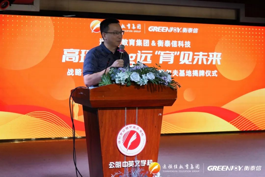 2023年10月29日,遠(yuǎn)恒佳教育&衡泰信科技戰(zhàn)略合作簽約儀式暨青少年高爾夫基地揭牌儀式在公明中英文學(xué)校隆重舉行。深圳市遠(yuǎn)恒佳教育集團(tuán)總裁宋遠(yuǎn)標(biāo)、副總裁麥麗芬、副總裁宋騰、深圳市衡泰信科技有限公司總經(jīng)理王繼軍、公司市場部、運(yùn)營部負(fù)責(zé)人出席活動(dòng),公明中英文學(xué)校校長周文霞、副校長李莉萍及師生家長代表參與活動(dòng)