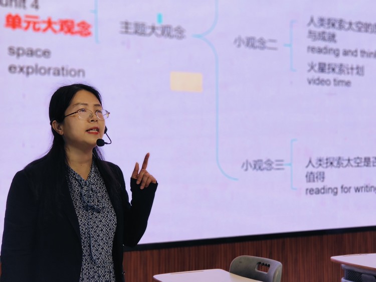 接著,長壽中學(xué)譚曉娟老師說課《Unit 4 Space Exploration ——Listening and Speaking》。譚老師深刻地分析了單元大觀念教學(xué)和實(shí)際教學(xué)金幣貼合的實(shí)際,特別是針對聽力教學(xué)方面,提出了自己的真知灼見。