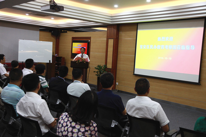 2016年10月18日,寶安區(qū)民辦教育協(xié)會一行40多人,在林良浩會長、鐘慶祥秘書長帶領(lǐng)下,來到深圳市龍華中英文實驗學校參觀考察“教育國際化特色”建設(shè)情況。