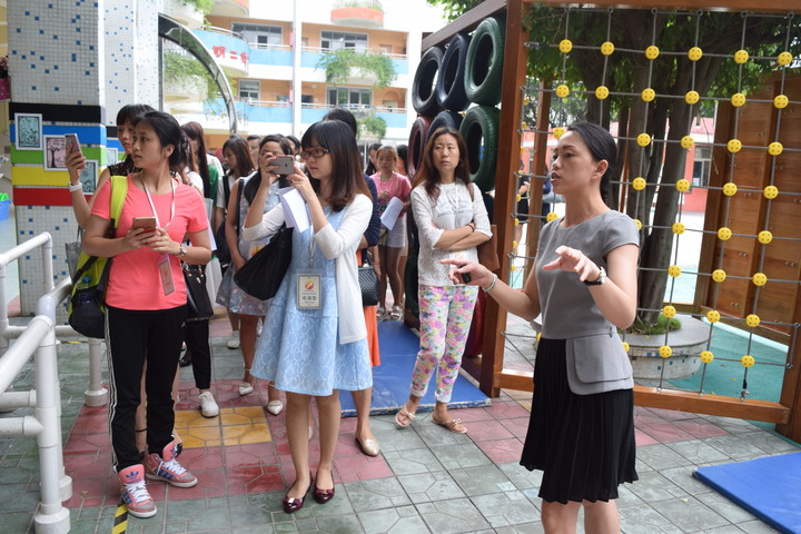 為了充分發(fā)揮省級(jí)示范幼兒園的引領(lǐng)帶頭作用,2016年5月20日,二幼對(duì)龍華新區(qū)區(qū)級(jí)及以下幼兒園園長進(jìn)行“戶外活動(dòng)組織與實(shí)施”觀摩活動(dòng)。為了讓本次交流活動(dòng)的價(jià)值最大化,該園兩位園長及助理精心策劃,將半天活動(dòng)安排的井井有條。此次活動(dòng)分為觀摩與交流兩部分,流程是參觀戶外環(huán)境、早操展示、體能大循環(huán)和互動(dòng)交流四個(gè)環(huán)節(jié)。