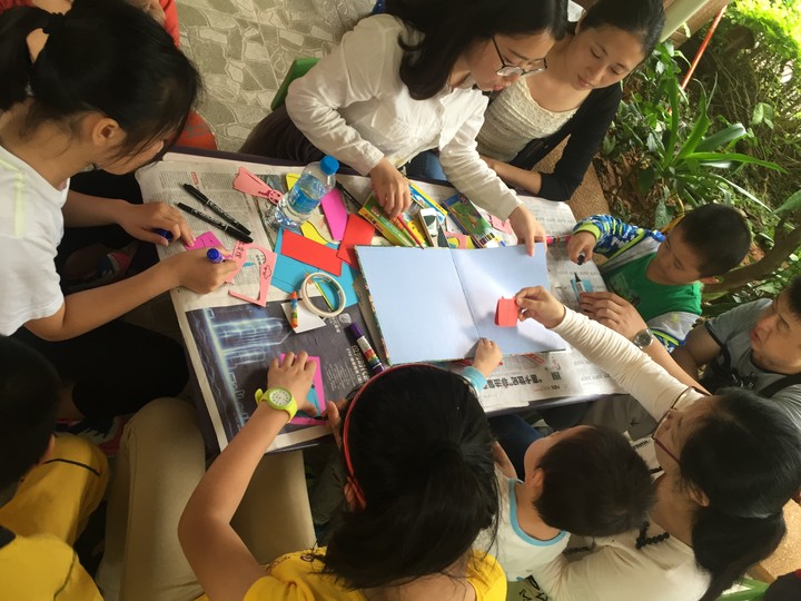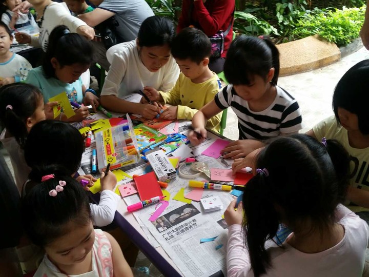 美術(shù)老師帶著寶貝們進(jìn)行書簽DIY