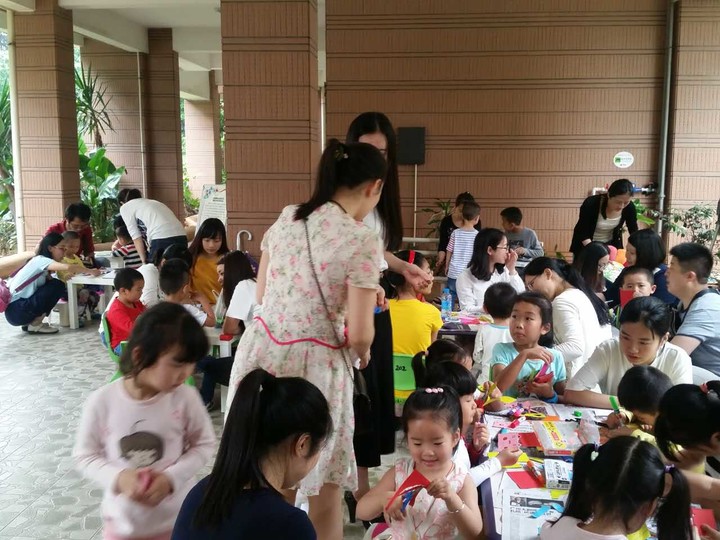 老師們布置活動現(xiàn)場,等待孩子和家長們的到來