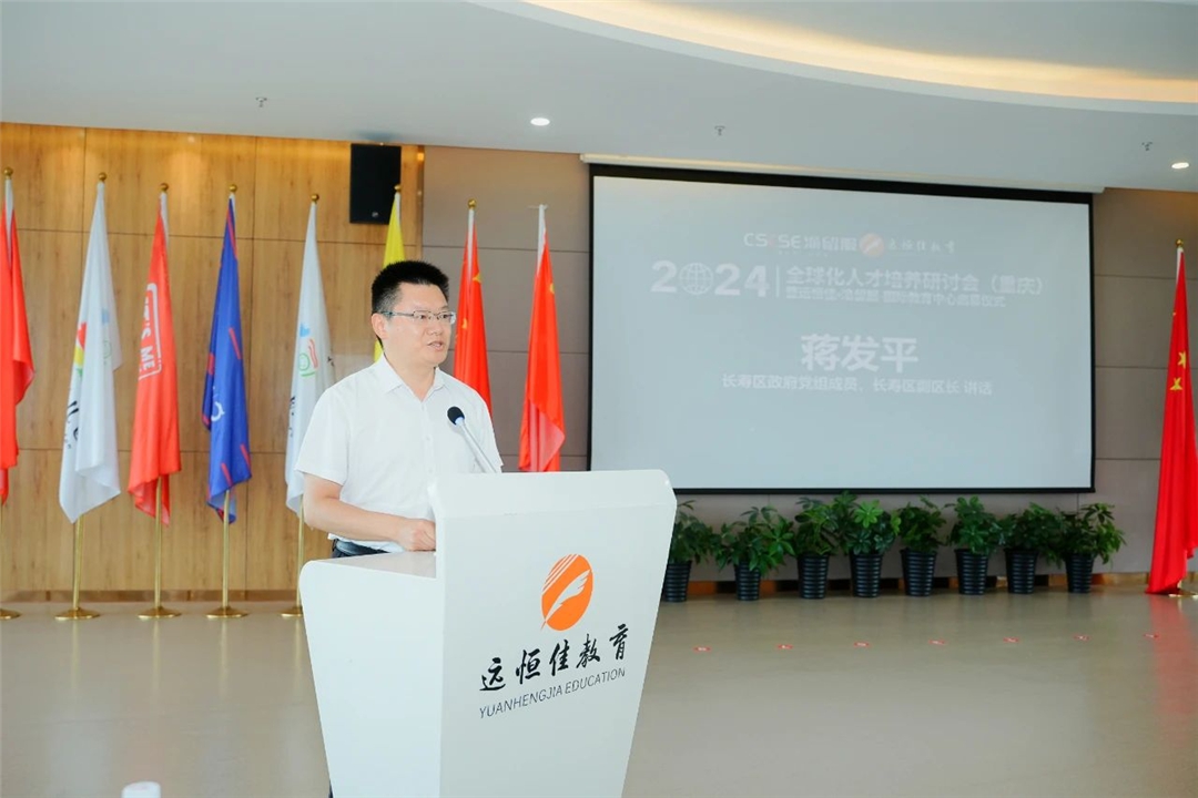 蔣發(fā)平在致辭中說,長壽區(qū)正加快推進(jìn)國際化綠色化智能化人文化中國長壽城建設(shè),全球化人才培養(yǎng)研討會(huì)暨遠(yuǎn)恒佳?渝留服—國際教育中心的啟幕,將帶來更多與國際接軌的教育機(jī)會(huì),吸引更多國際教育資源落地長壽。要充分利用好這一交流平臺(tái),積極搭建國際教育“連心橋”,努力拓展國際教育“朋友圈”,讓更多長壽師生走出國門、走向世界,拓展國際視野、參與國際交流,共同助力長壽國際化教育事業(yè)大步前行。