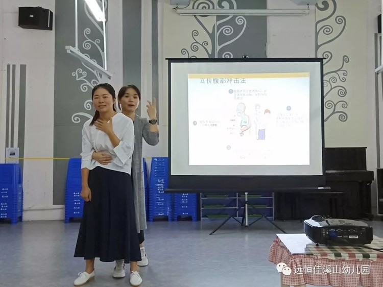 涂醫(yī)生運用PPT詳細直觀地為幼兒園教職工講解了如何在幼兒園進行常見病識別、預防和處理。指導教師正確處理幼兒擦傷、燒傷、燙傷、止血包扎、觸電、發(fā)熱、高熱驚厥、骨折、氣管異物的方法。什么情況下應該打120急救,什么情況下應該告知家長。并現(xiàn)場對老師進行海姆立克急救法培訓,通過模擬示范、動作演練,讓老師掌握萬一幼兒在園發(fā)生氣管異物,如何立刻采取有效急救措施,防止意外發(fā)生。