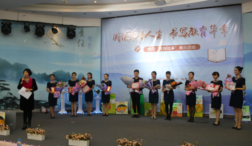 集團(tuán)屬下10所幼兒園(深圳8所、重慶2所)262名教師參加了前期各園組織的“我的教育故事”海選,最后推選出13位教師登臺亮相。13個(gè)故事鮮活真實(shí),13個(gè)故事凝練厚重,13個(gè)故事美好溫暖。她們有的講述對“個(gè)性孩子”的接納和關(guān)愛,有的抒發(fā)對幼兒教育的理解和熱愛,有的分享美好教育的心路歷程……故事的背后濃縮了為人師者的付出與收獲、歷練與成長,特別是來自遠(yuǎn)恒佳幼兒園的10號選手夏博,作為唯一一名參展男教師,他真實(shí)的故事、動(dòng)人的情節(jié),加上“家人”助陣,贏得陣陣喝彩。他從大學(xué)選擇學(xué)前教育專業(yè)到遇見愛情,畢業(yè)后出于對“幼兒教育夢”的不懈追逐,1對戀人一起走進(jìn)了遠(yuǎn)恒佳幼兒園,緣夢圓夢……唯美的師幼情景表演《書香點(diǎn)亮世界》、詩朗誦《人生最美是讀書》將活動(dòng)推向了高潮。