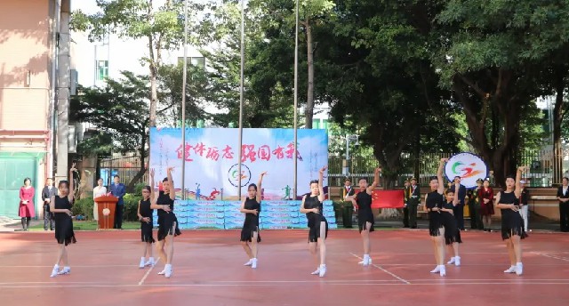 隨著運動員入場完畢,伴著悠揚的音樂,五年級學生手持彩花歡快入場,大型歌伴舞《歌唱共產(chǎn)黨》、《心愿》為全體師生獻上了一場美侖美奐的視聽盛宴,歌聲悠揚、場面壯觀,參演師生飽含深情表達對祖國的熱愛之情?;犹K、激情拉丁舞以及啦啦操特色表演輪番登場,跳繩中的高難動作、拉丁舞的激情奔放、啦啦操中的優(yōu)美組合,瞬時點燃全場熱情,在同學們的陣陣歡呼中整個校園成了歡樂的海洋。