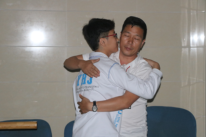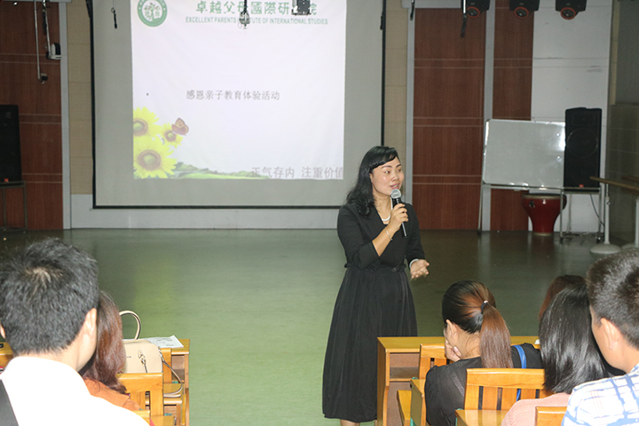 講座中,祝主任通過觸動心靈的演講、親子游戲和感情的渲染力,使現(xiàn)場大部分的老師、家長和同學(xué)都流下了眼淚,體驗愛的感覺。