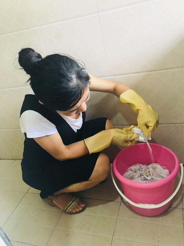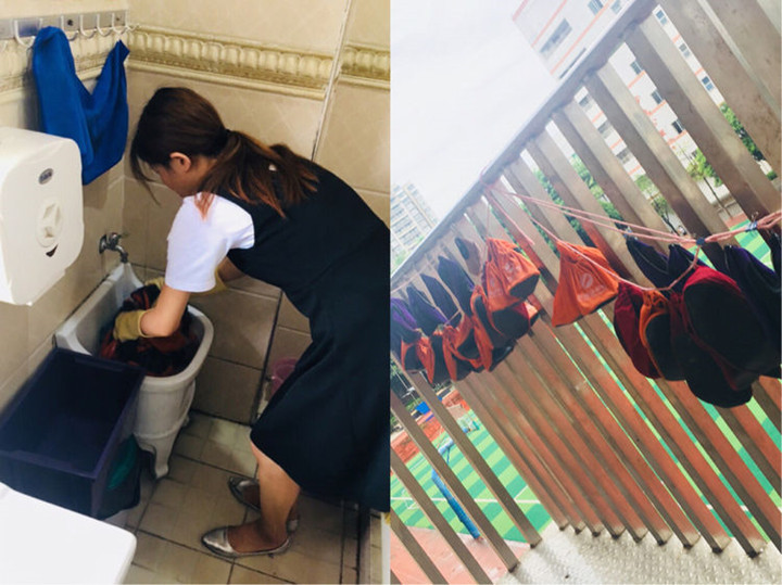 老師對鞋套及時(shí)消毒清洗,晾曬。