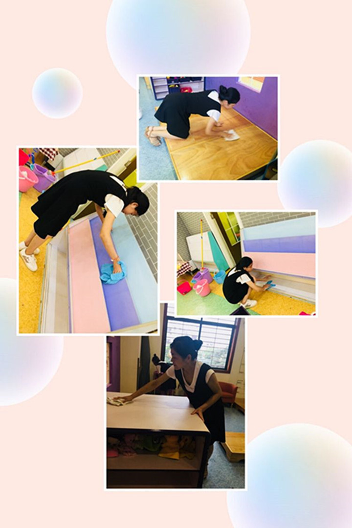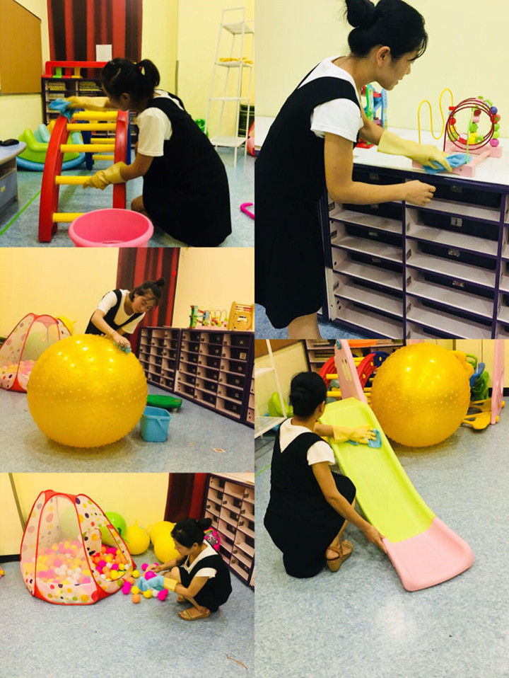 中心是孩子生活與游戲的場所,衛(wèi)生消毒工作是我們衛(wèi)生工作的重點(diǎn)。為了給寶貝們和老師營造一個(gè)整潔安全、舒適的環(huán)境,中心建立室內(nèi)外環(huán)境衛(wèi)生清掃和檢查制度,堅(jiān)持每天一小掃,每周一大掃。下面請來看看我們老師為中心必做的消毒工作吧!