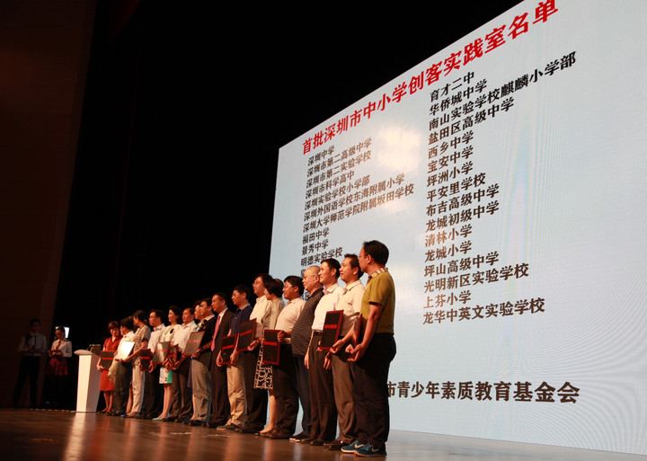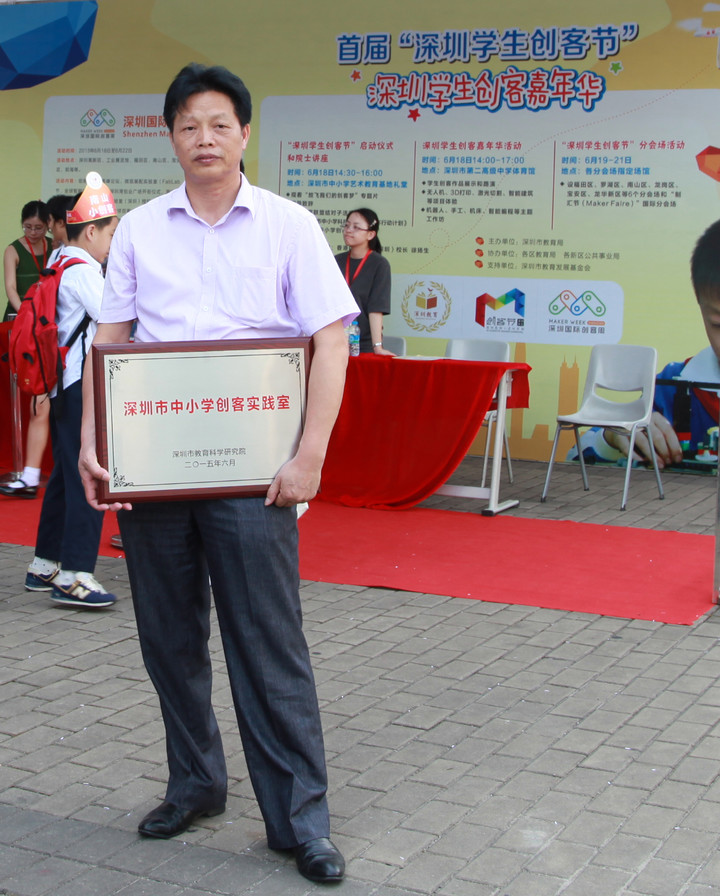 6月18日下午,深圳首屆學生創(chuàng)客節(jié)啟動儀式在市中小學藝術教育基地舉行,出席啟動儀式的領導有吳以環(huán)副市長、市教育局郭雨蓉局長、市教育局范坤副局長、香港教育局陳嘉琪副秘書長,以及深圳市中小學師生和香港學校代表1000多人出席。學校戴桓標校長參加了首批32個中小學創(chuàng)客實踐室的授牌儀式,并參觀了設在市中小學藝術教育基地和市第二高級中學體育館主會場的22個創(chuàng)客作品展區(qū),共3000多件作品,感受學生們的創(chuàng)作思維及能力。首批授牌的實踐室將得到柴火創(chuàng)客空間和深圳市青少年素質教育基金會的支持,為學生創(chuàng)新提供平臺和經費支持。