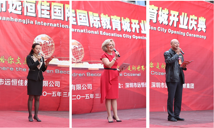 遠恒佳國際教育城開業(yè)慶典在鑼鼓喧天、鼓號齊鳴的熱烈氣氛中展開。首先,主持慶典的遠恒佳教育集團董事長助理程琳娜女士、國際教育城副校長Ellyson先生介紹嘉賓,600位嘉賓、家長朋友及孩子們到場參加出席本次慶典,并由遠恒佳教育集團師生表演精彩節(jié)目。緊接著,教育集團董事長宋遠標先生代表集團董事會致熱情洋溢的歡迎詞,并表示,遠恒佳教育集團將踐行“美好教育”辦學理念,加快推進優(yōu)質(zhì)、特色、多元化內(nèi)涵發(fā)展,為每一個學子擁有美好人生而不懈努力,譜寫出深圳“幸福教育”新篇章;嘉賓代表------國際教育城合作伙伴的美國彩虹堡創(chuàng)始人總裁Gail Johnson 女士、華南師范大學美術(shù)學院書記余慶先生致辭,對教育城開業(yè)表示熱烈祝賀;國際教育城校長蔡文娜致辭,她對教育城的發(fā)展充滿信心。教育集團董事長宋遠標先生、副董事長宋利豐、麥麗芬女士、教育城校長蔡文娜女士及華南師范大學美術(shù)學院書記余慶先生、華南師范大學美術(shù)學院院長方少華先生、北京師范大學珠海分校設計學院陳方遠教授、美國彩虹堡創(chuàng)始人總裁Gail Johnson 女士、美國彩虹堡副總裁Earl Johnson先生等嘉賓為遠恒佳國際教育城開業(yè)進行了剪彩儀式。