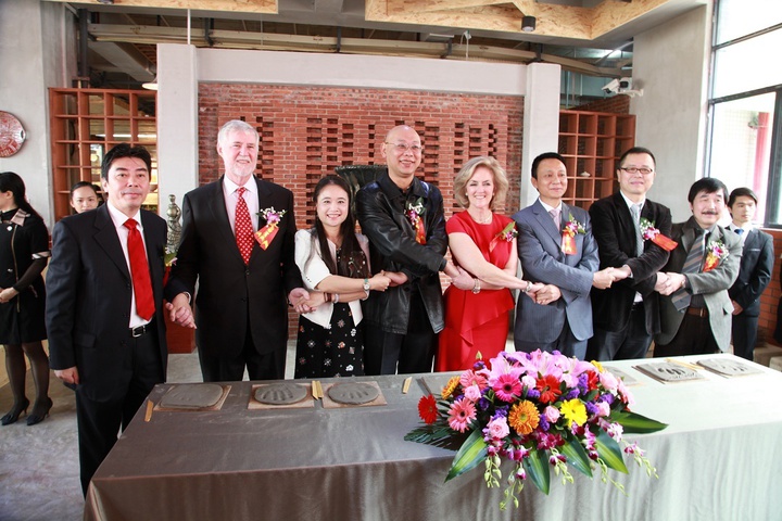 遠恒佳國際教育城校長蔡文娜致辭,美國彩虹堡創(chuàng)始人及總裁Gal Johnon女士致辭,華南師范大學美術(shù)學院書記余慶先生致辭。