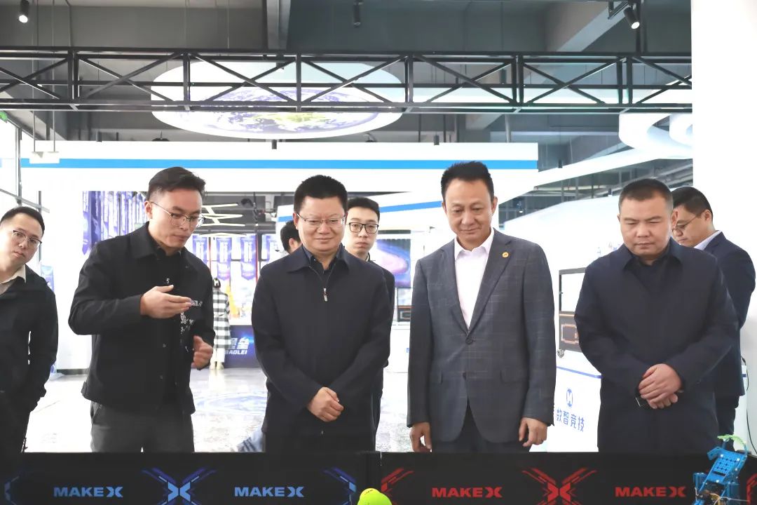 在科創(chuàng)中心,宋遠(yuǎn)標(biāo)董事長對于目前場館建設(shè)現(xiàn)狀及課程開展情況進(jìn)行了詳細(xì)介紹,并陪同長壽區(qū)政府考察團(tuán)一行進(jìn)行體驗(yàn)觀摩了教學(xué)區(qū)、人工智能區(qū)等多個(gè)板塊。